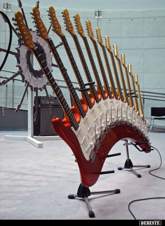 Sieht interessant aus; jetzt würde ich noch gerne wissen, was das ist. Eine Gitarre für eine ganze Band? Oder unterschiedlich gestimmt für einen Sologitarristen?