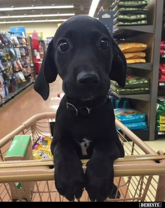 Och süß ! Schnuffi beim shoppen im Fressnapf .