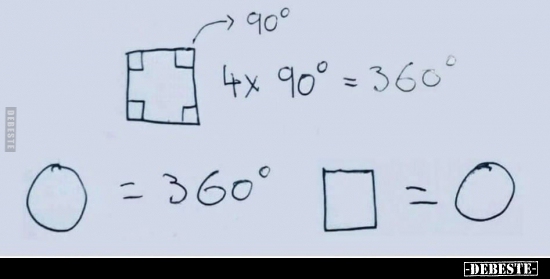 Sorry, war nie gut in Mathe aber die Zeichnung bzw. Erklärung macht keinen Sinn. Damit sie Sinn macht hätte man den rechten Winkel als Winkelweite zeichnen müssen (1/4 Halbkreis in diesem Fall) somit würde bei 4 Winkel ein ganzer Kreis bei raus kommen. Laut Zeichnung geben 4 Quadrate ein Kreis was wiederum ein Quadrat ergibt !!!