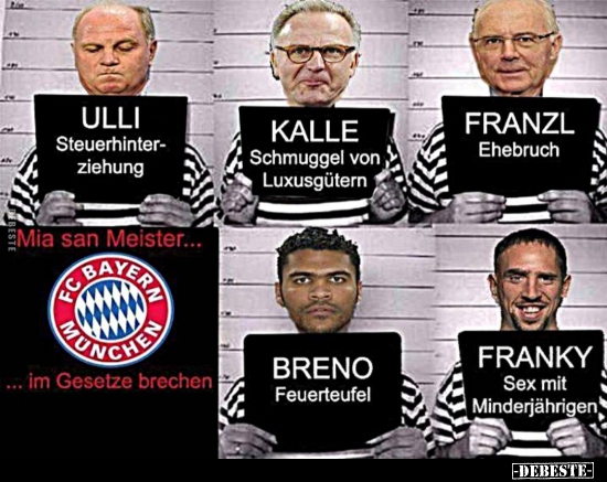 Ach ja war Breno nicht der Feuerteufel, zu den Steuerhinterziehern(Honess,Rummenigge, Beckenbauer), Immobilienbetrüger und Pädophilen(Ribery)