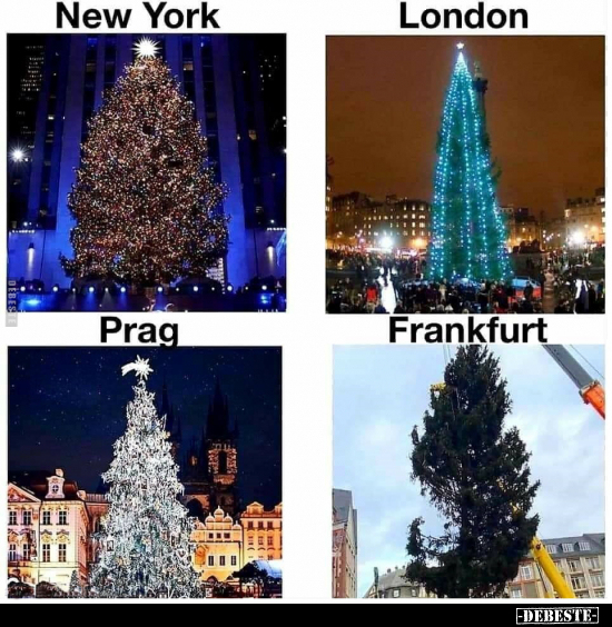 Der Vergleich hinkt... die anderen sind schon fertig, während der Frankfurter noch im Aufbau ist! Fairerweise fehlt ein Bild davon im Endzustand! Ich bin mir sicher, dass die anderen Bäume im "Rohzustand" auch nicht besser aussahen...