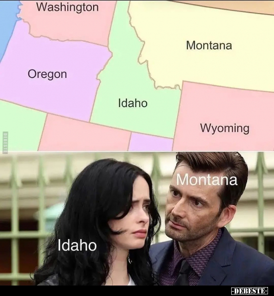 Idaho liegt neben Montana, aber Montana liegt auch oberhalb von Idaho und steckt eine Nase in Idaho.