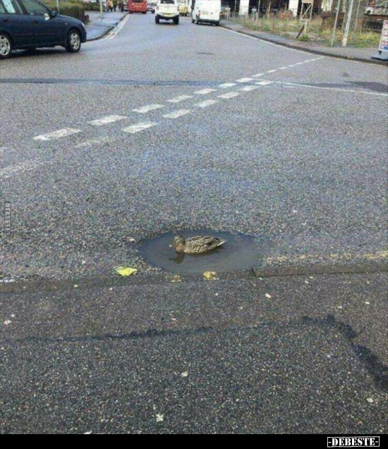 Da gibt es wohl traurigerweise keinen Weiher für die Ente in der Nähe. Not macht erfinderisch; auch bei Enten.