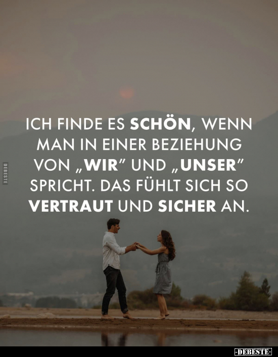 Ich finde es schön, wenn man in einer Beziehung von "wir" und "unser" spricht. Das fühlt sich so vertraut und sicher an.