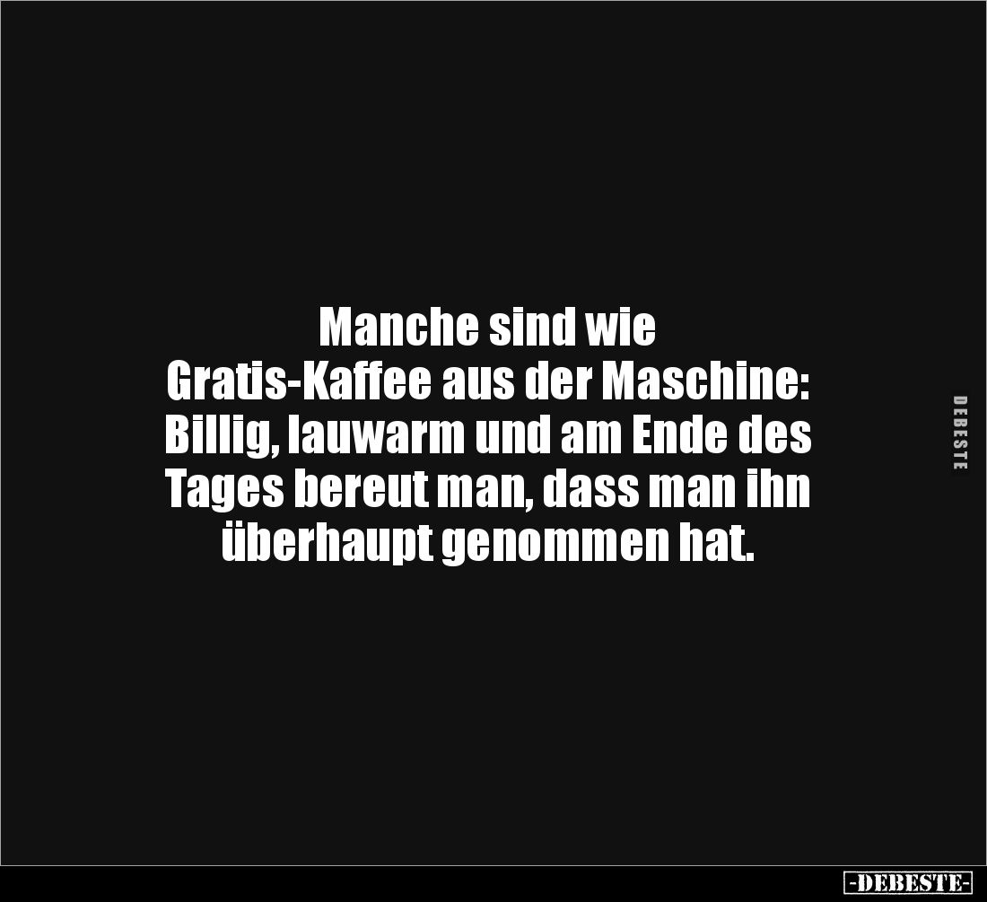 Manche sind wie Gratis-Kaffee aus der Maschine: Billig, lauwarm und am Ende des Tages bereut man, dass man ihn überhaupt genommen hat. Kommentar (0) | tags: #ende #tages