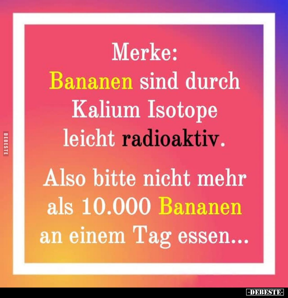 Merke: Bananen sind durch Kalium Isotope leicht radioaktiv..