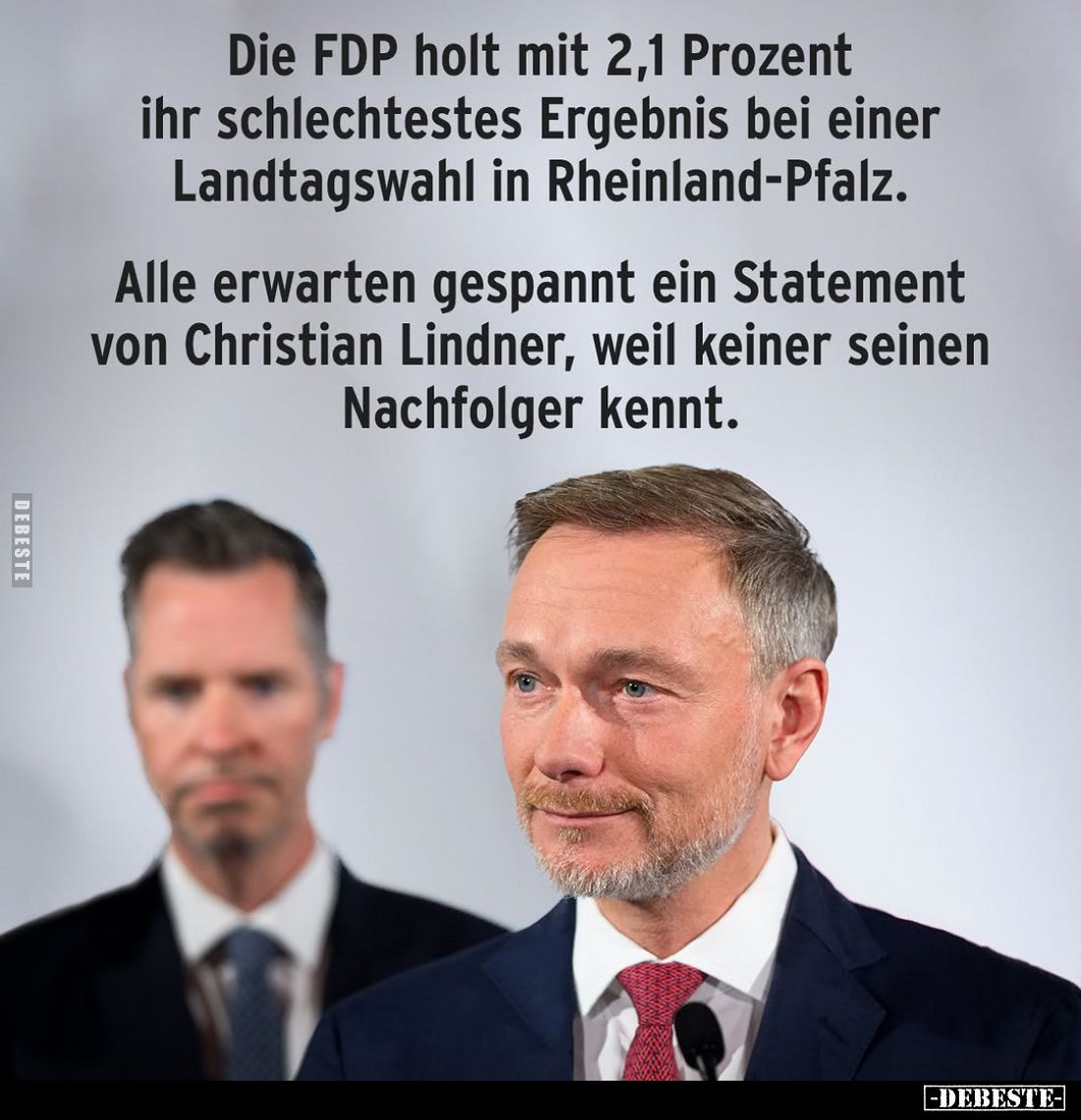 Die FDP holt mit 2,1 Prozent ihr schlechtestes Ergebnis bei einer Landtagswahl in Rheinland-Pfalz. Alle erwarten gespannt ein Statement von Christian Lindner, weil keiner seinen Nachfolger kennt. Kommentar (0) | tags: #christian