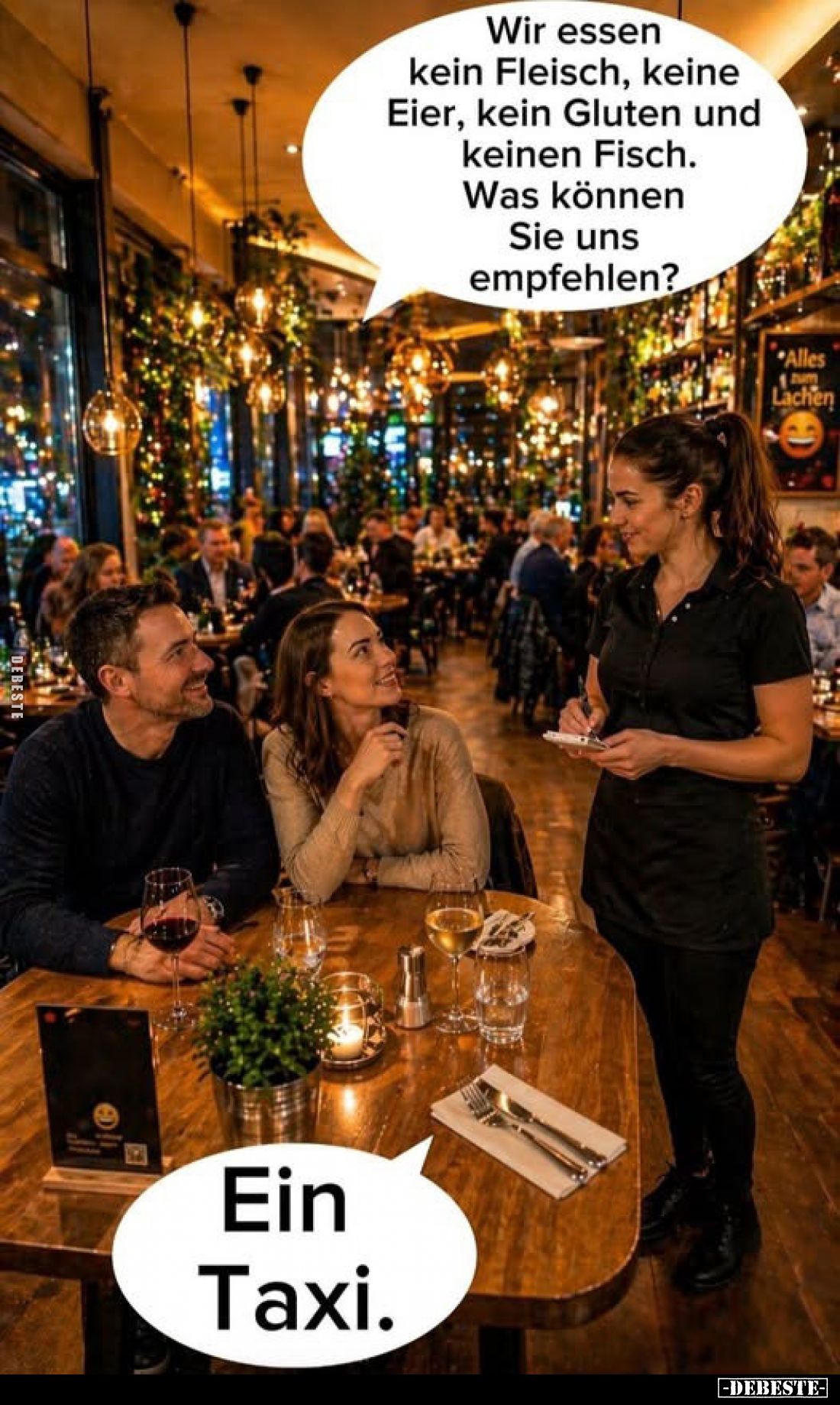 2 Typen gehen essen. Typ 1: Den veganen bitte Typ 2: Für..