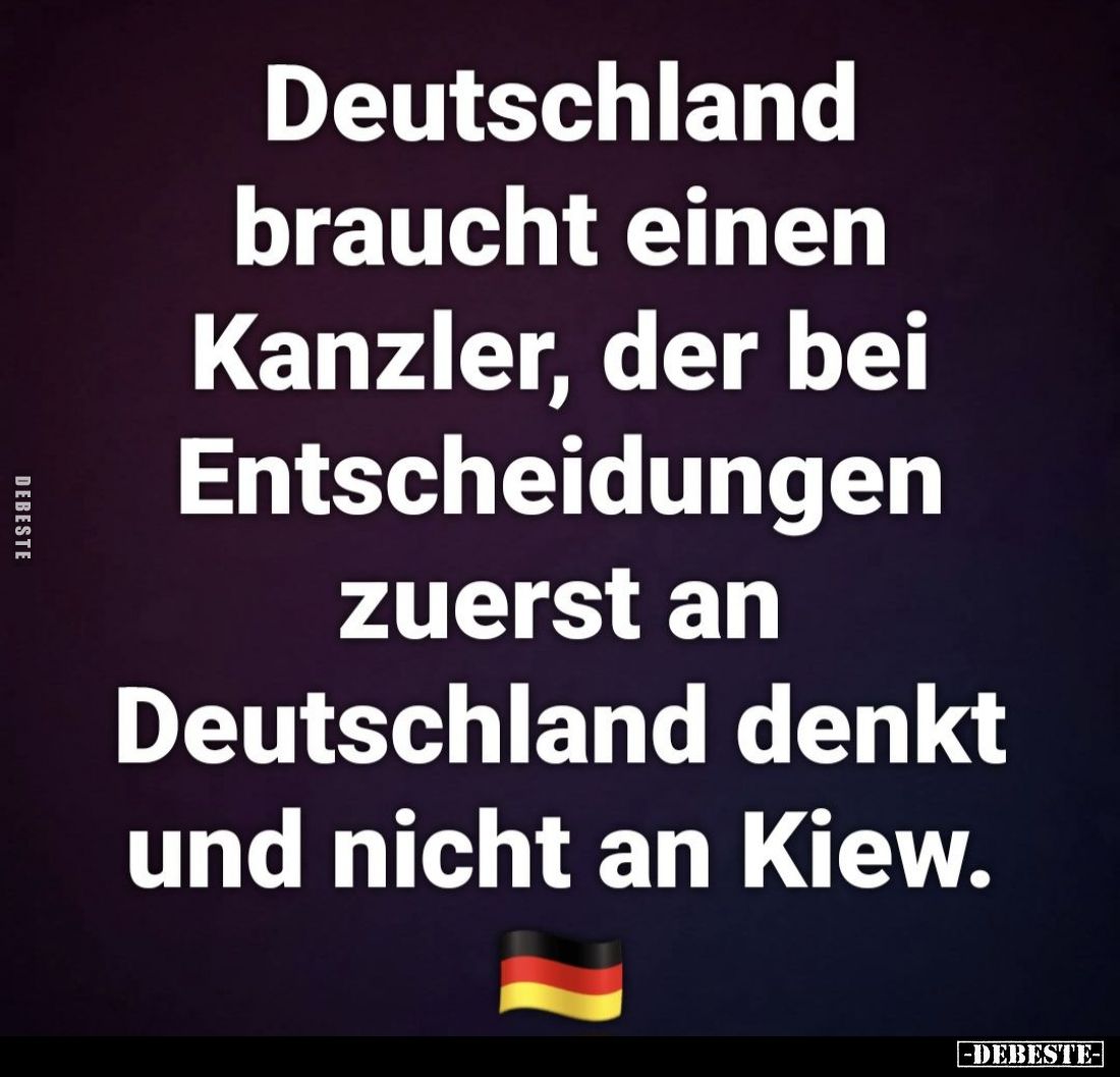 Deutschland braucht einen Kanzler, der bei Entscheidungen zuerst an Deutschland denkt und nicht an Kiew. Kommentar (0) | tags: #deutschland #kanzler