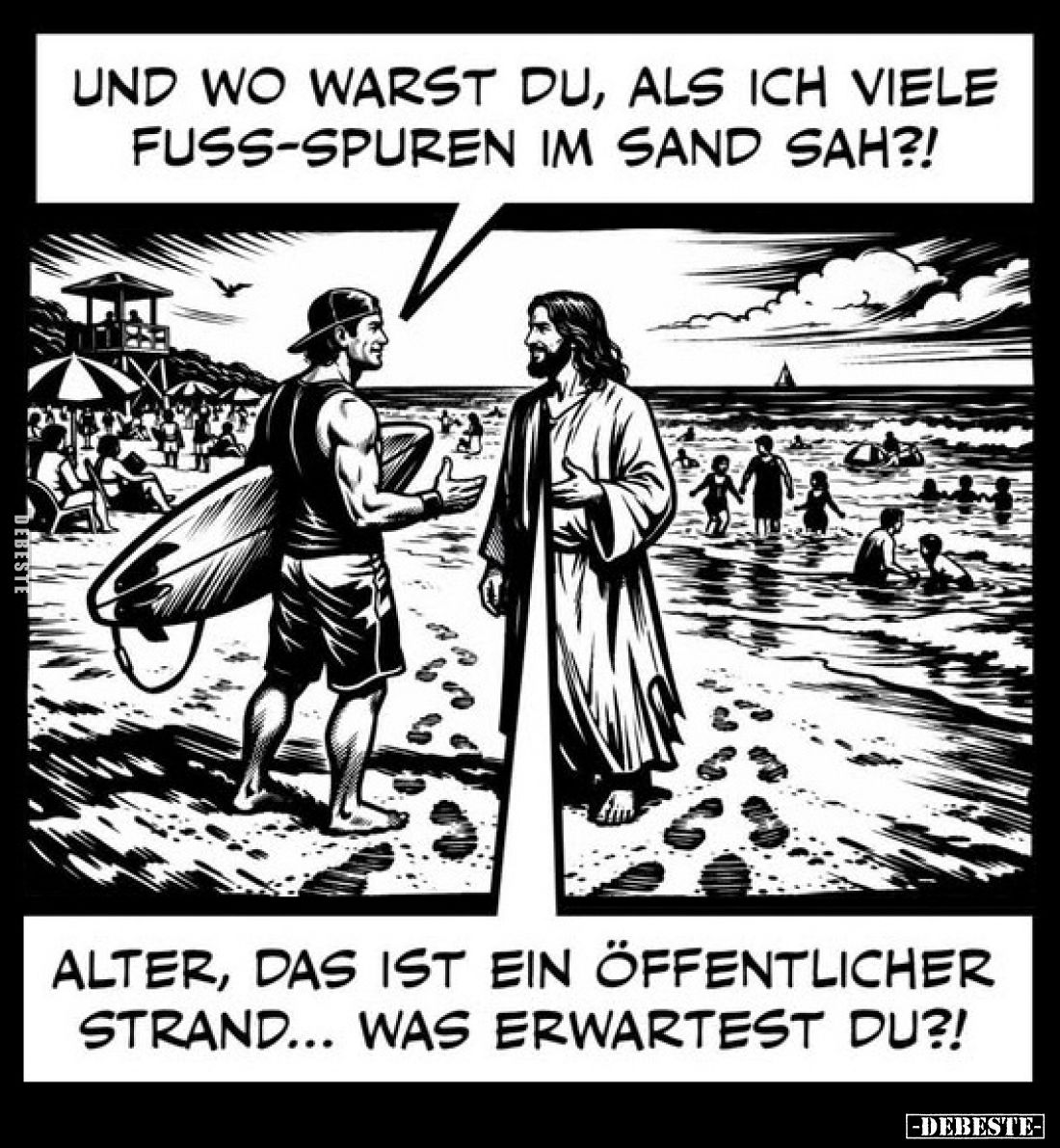 Und wo warst du, als ich viele Fuss-Spuren im Sand sah?! - Alter, das ist ein öffentlicher Strand... Was erwartest du?! Kommentar (0) | tags: #im sand #alter #strand