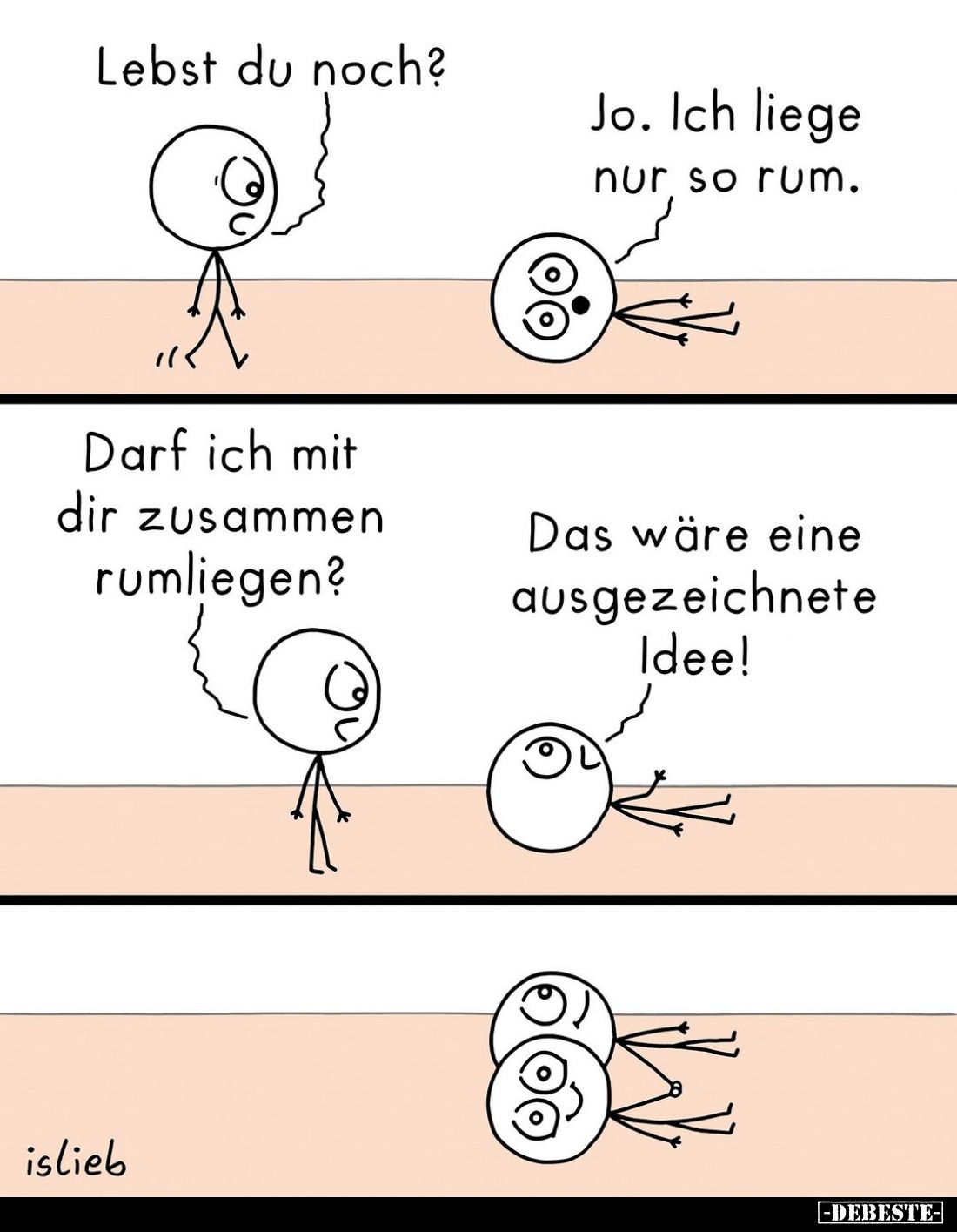 Lebst du noch? - Jo. Ich liege nur so rum. - Darf ich mit dir zusammen rumliegen? - Das wäre eine ausgezeichnete Idee! Kommentar (0) | tags: #lebst du noch