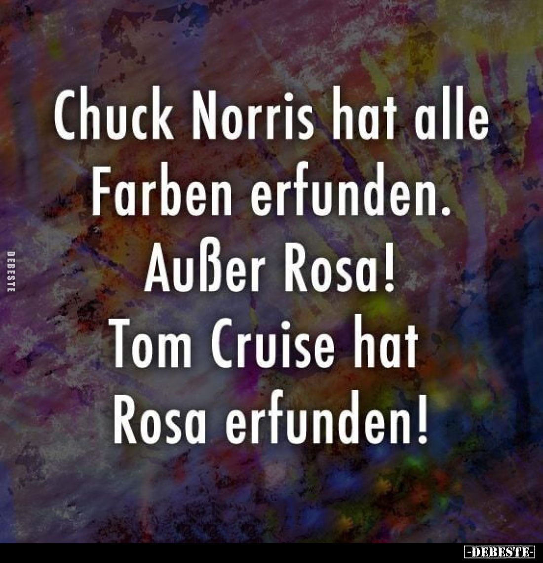 Chuck Norris hat alle Farben erfunden. Außer Rosa! Tom Cruise hat Rosa erfunden! Kommentar (0) | tags: #farben