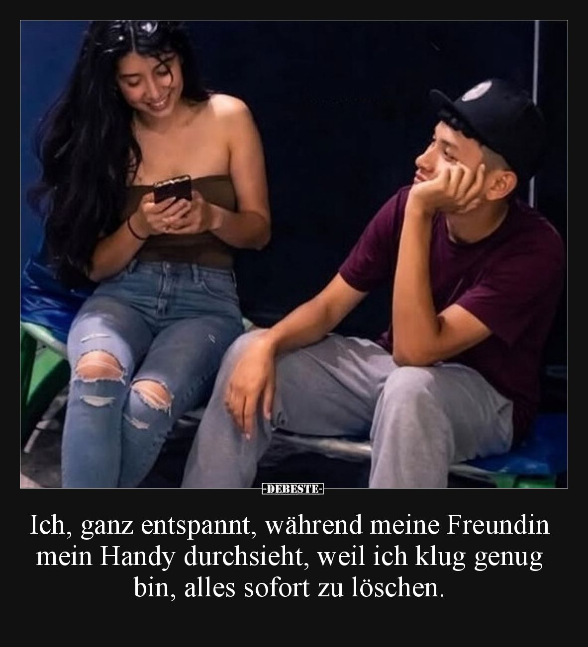 Ich, ganz entspannt, während meine Freundin mein Handy..