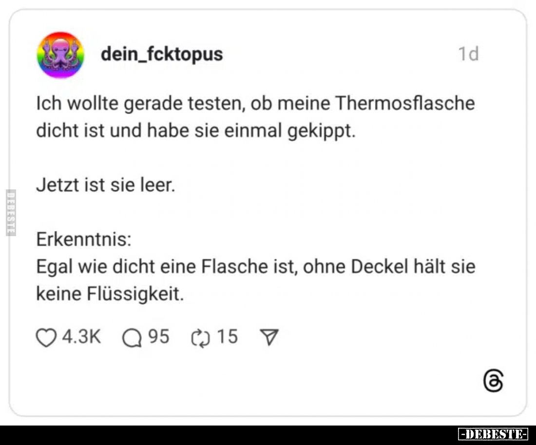 Ich wollte gerade testen, ob meine Thermosflasche dicht ist..